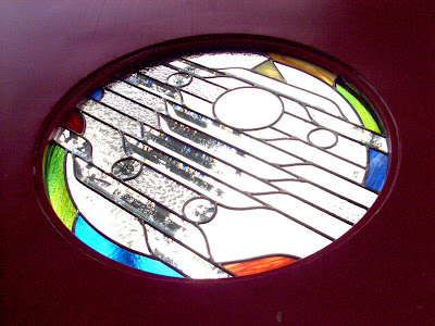 磨邊玻璃經過陽光照射;輝映出彩色光芒,
